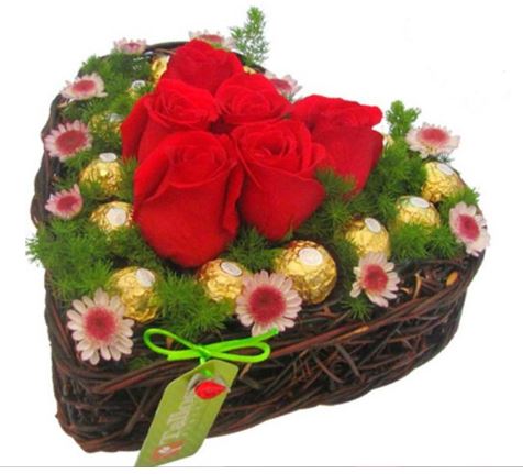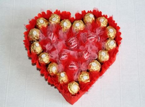 أولاً: هدايا شوكولاته مع ورد على شكل قلب
